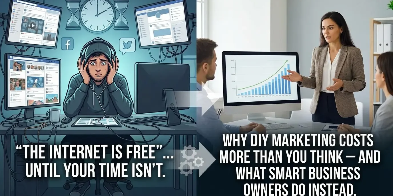 Because while the tools may be free, effective marketing never is. And the real cost most DIYers underestimate isn’t the software subscription or the ad budget — it’s their own time, energy, and the compounding cost of missed opportunities.
